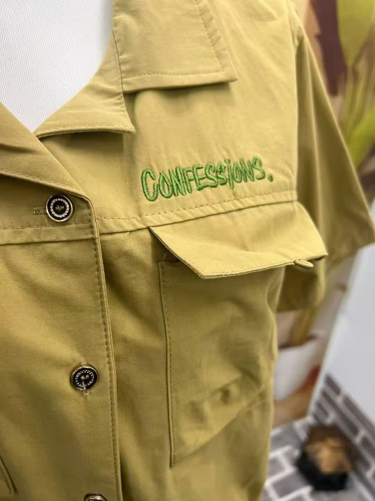 全清7.8元/件113件字母刺绣工装短袖衬衫,独立包装带...