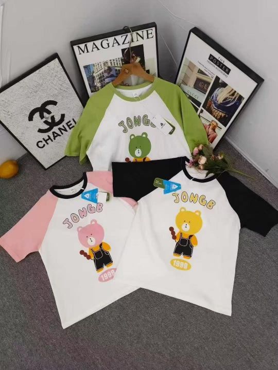 品牌童装小熊印花logo纯棉T恤,数量1500件左右,尺码110--160,整款三个色,纯棉面料后领包边,独立包装带吊牌,货品整洁质佳