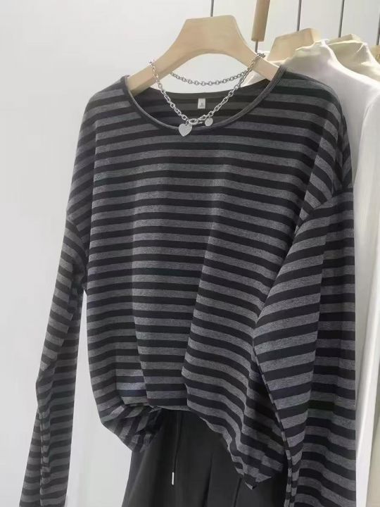 787件男女同款慵懒风春秋冬季打底衫美式条纹长袖t,有...