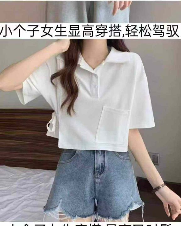 ✅80件辣妹复古撞色高腰短款体恤,尺码S-XL ,面料舒适透气有弹力,后领包...