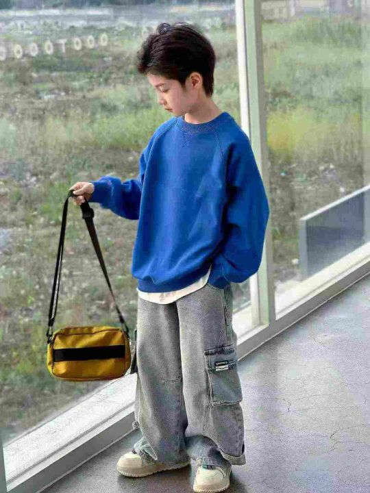 天猫在售款650件左右高品质中大童春秋款时髦痞帅休闲纯色卫衣,码数120-170,单款两色(蓝色多)后领包边到肩,质量好货品干净,十件一包装