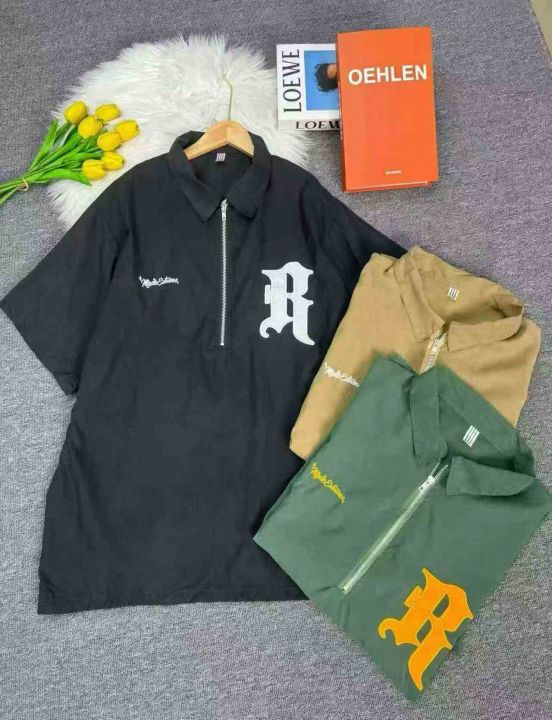 工装半拉链短袖polo衫男宽松美式刺绣翻领T恤,前后重工刺绣工艺, 数量:3022件 码数:m-xL码,版型够大,分货加价,独立包装(货号322#26)