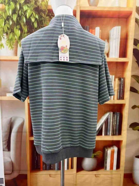 64件灰蓝翻领条纹半拉链针加厚宽松外穿打底polo上衣,独立包装带吊牌,码数S-XL。