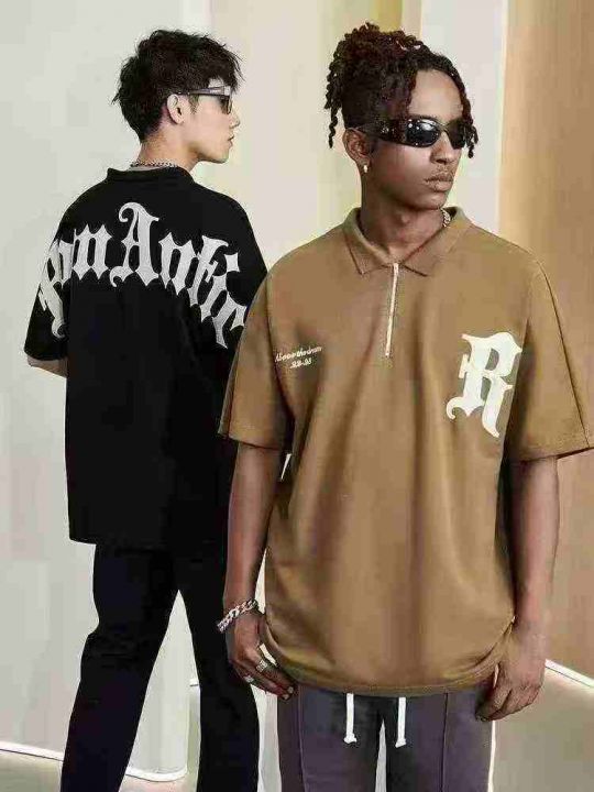 工装半拉链短袖polo衫男宽松美式刺绣翻领T恤,前后重工刺绣工艺, 数量:3022件 码数:m-xL码,版型够大,分货加价,独立包装(货号322#26)