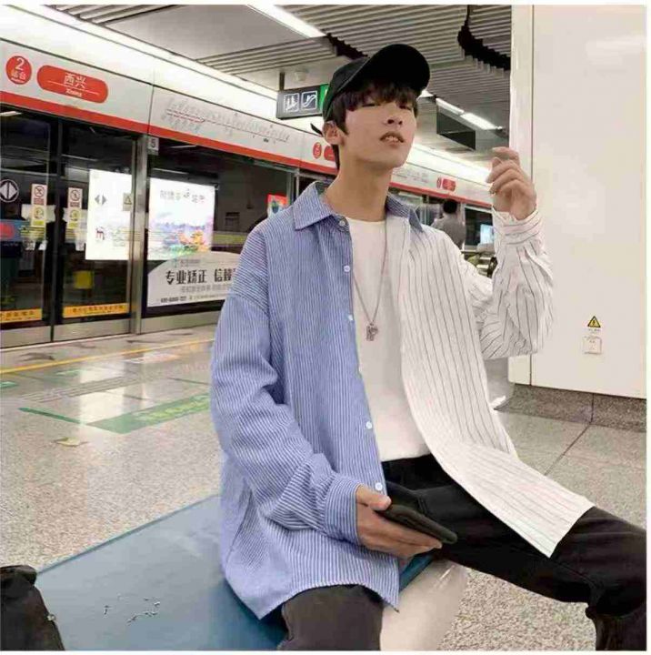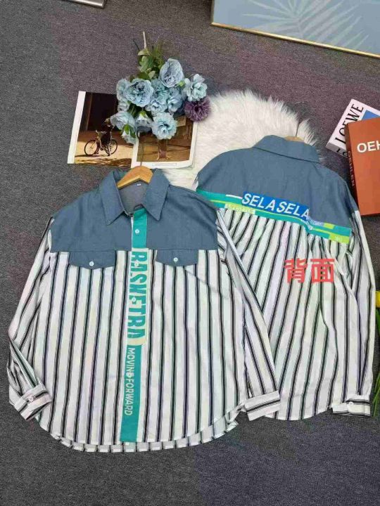条纹衬衫男韩版宽松潮流百搭帅气衬衣ins 痞帅数量:259件 含十条杂款 码数:2-5码 独立包装(货号404#10)