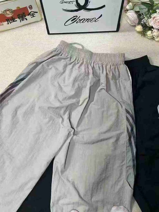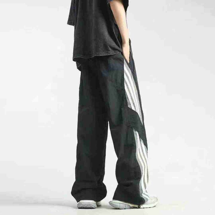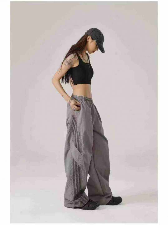 夏季薄款条纹休闲美式伞兵裤男女宽松阔腿直筒街舞运动...