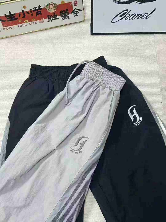 夏季薄款条纹休闲美式伞兵裤男女宽松阔腿直筒街舞运动冲锋裤工装长裤,拉链独立包装181条M~2XL码全清9.9分货加一