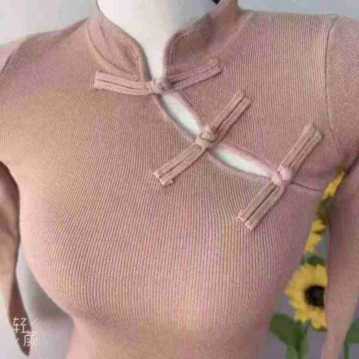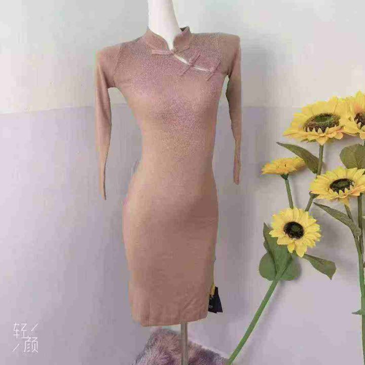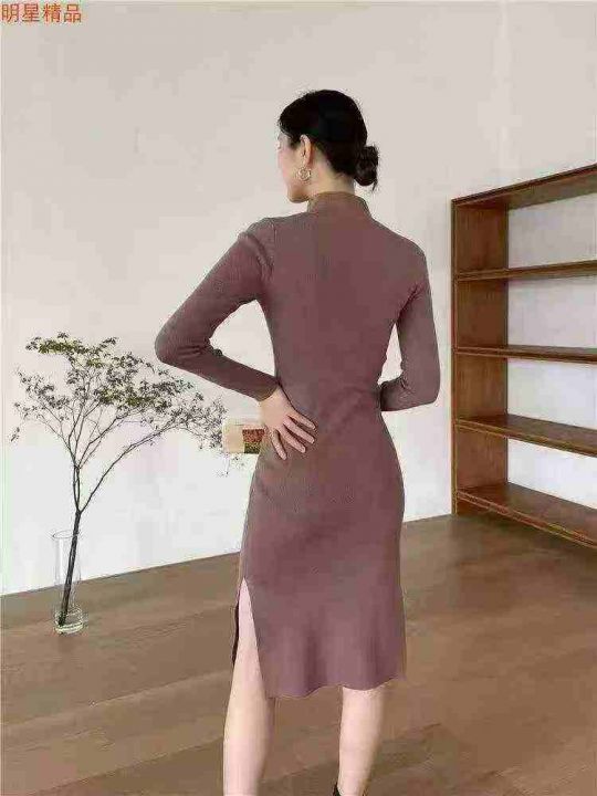 品牌新中式国风盘扣旗袍毛衣连衣裙,女包臀开叉长裙,...