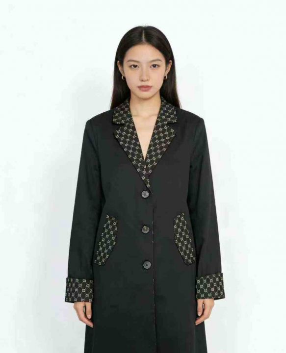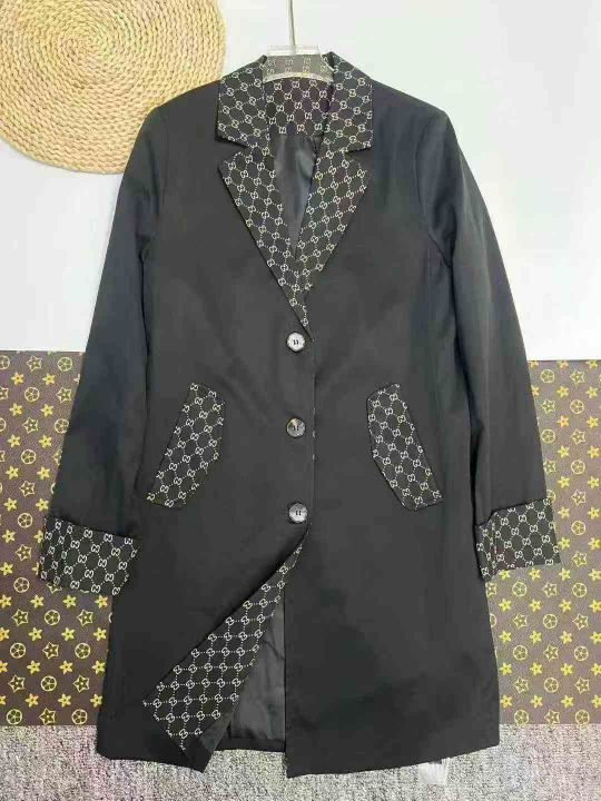 品牌女装风衣系列款,数量1275件,码数SML,杭州实体店货,黑色同一种款式3个花型,有内衬里布,全部防尘袋配衣架独立包装,吊牌价1680元,分货➕1随机配
