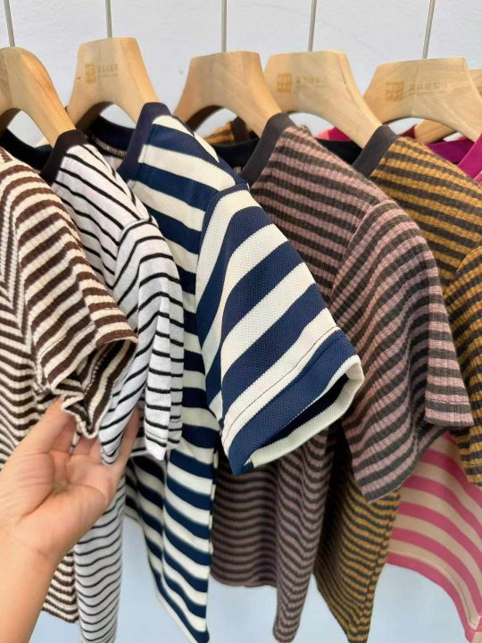 金马一个档口的条纹短袖T,减龄百搭款,这个价格,主要质量也超好,后领包边,雪花棉纯棉面料,视频款,小份30件起拿