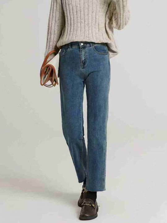 高腰直筒牛仔裤新款修身显瘦窄版小个子九分烟管裤90件...