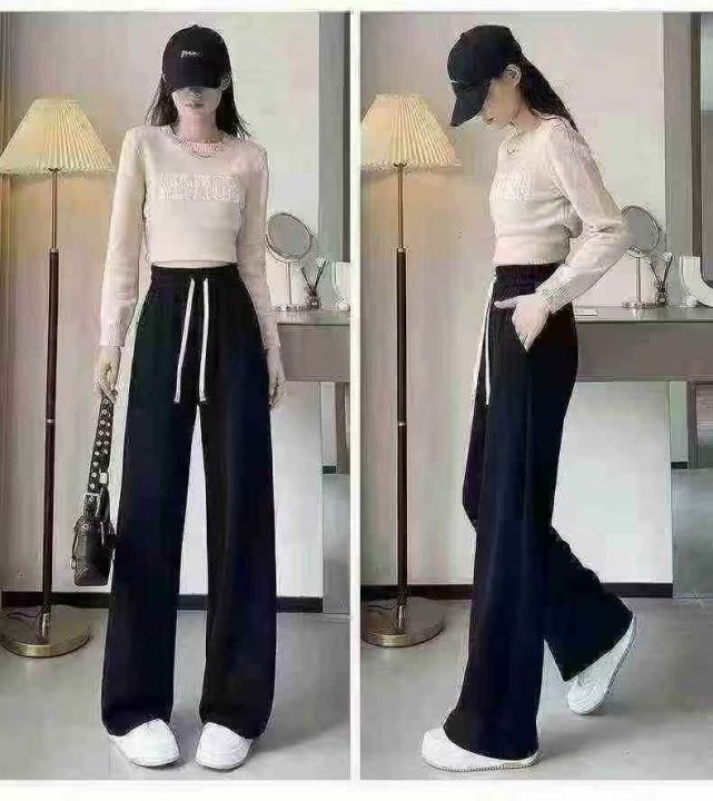 韩版简约春秋款女士雪尼尔灯芯绒垂感阔腿抽绳休闲直筒裤.图片款两种面料M-XL面料非常柔软舒适独立包装560条全清7.9分货加一