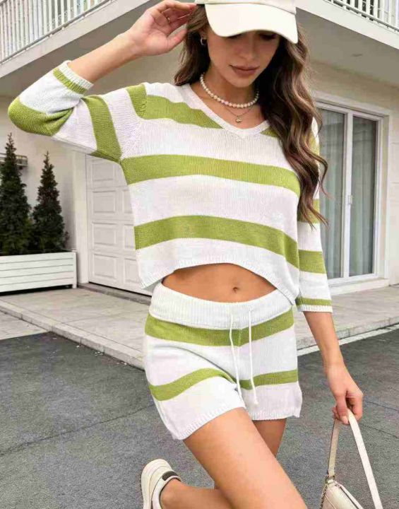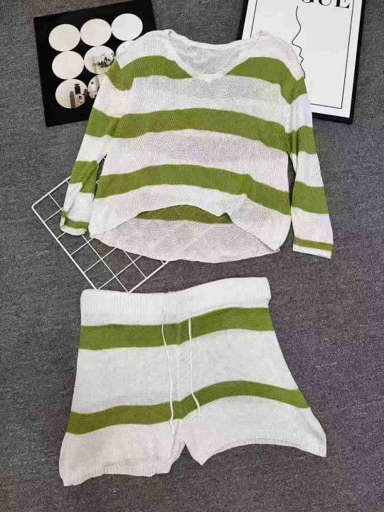 98套\'具体点数为准\'长袖薄款时尚百搭条纹针织短裤套装,独立包装\'均码,货号001#30