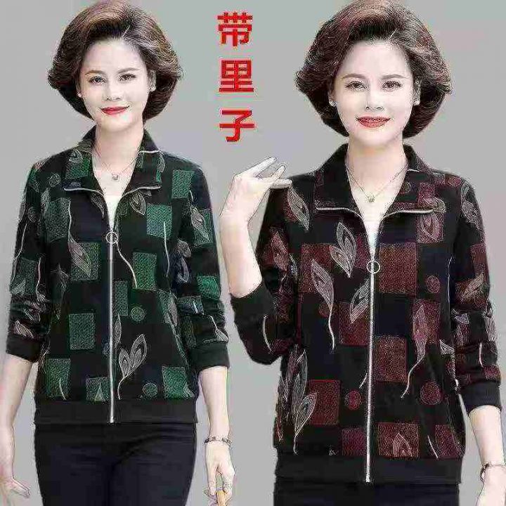 ☕️中老年妈妈装开衫外套新款春秋格子奶奶宽松夹克上...