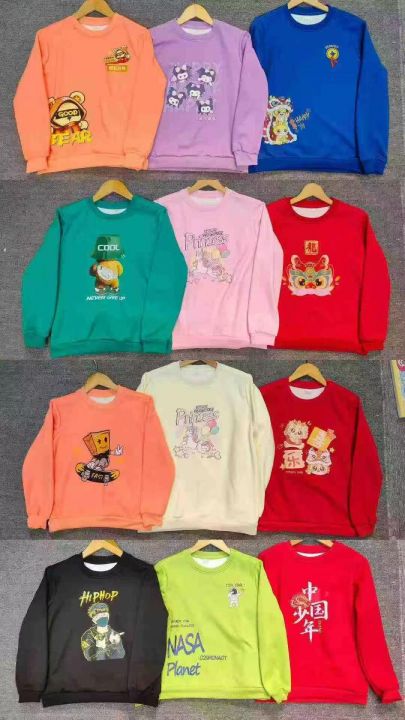 1560件秋冬男女中大童休闲圆领多巴胺印花加绒卫衣 内里婴儿绒,后领包边过肩 杂图杂色,码数110-170 货品干净防水袋装。