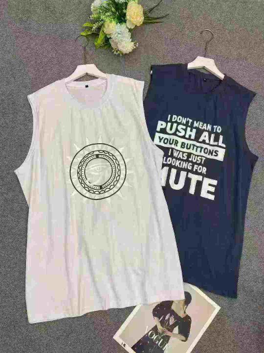 743件宽松休闲95棉印花短袖,其中有少量的背心。面料...