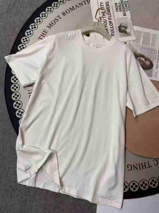7.8清546件100%纯棉光板短袖t恤后领包边宽松休闲 五...