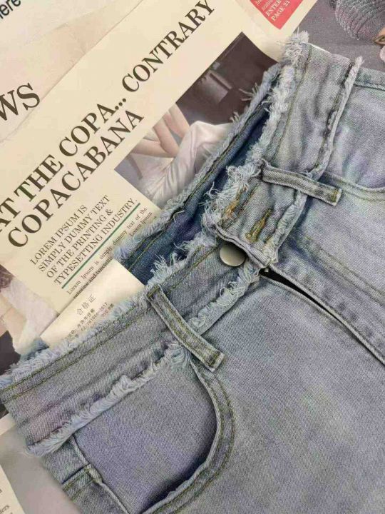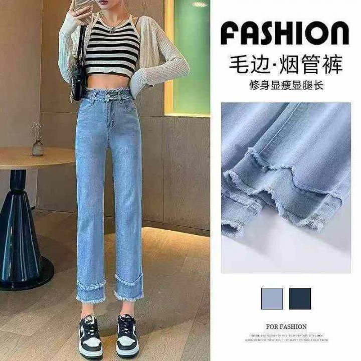 高腰显瘦弹力毛边烟管牛仔裤,单款单色,独立包装,数...