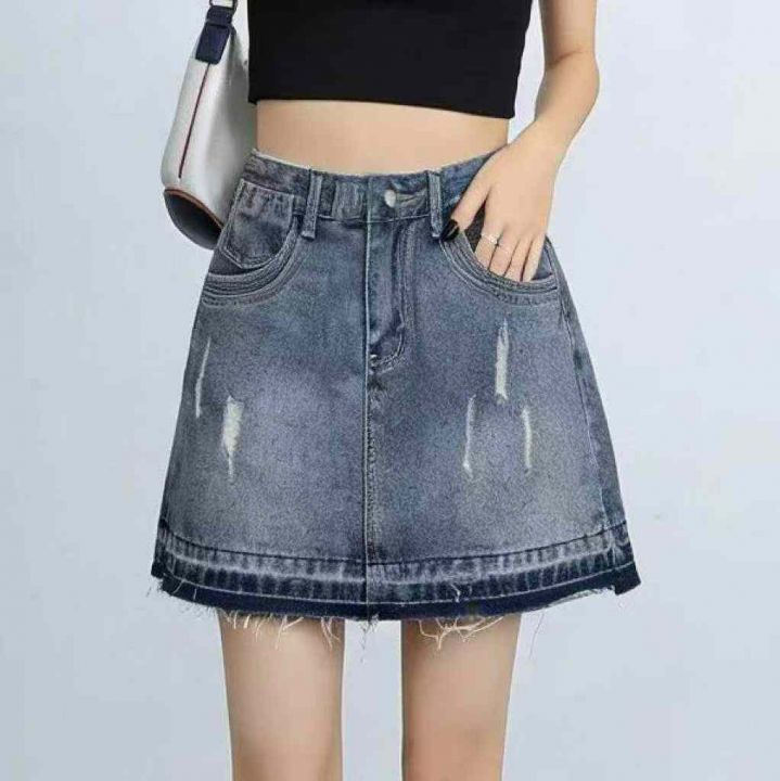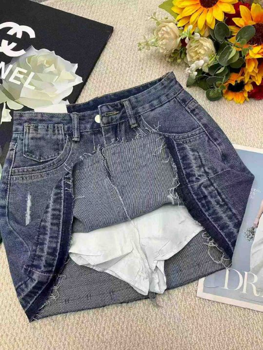 夏季新款网红复古洗水棉设计款牛仔短裙,独立包装带腰...