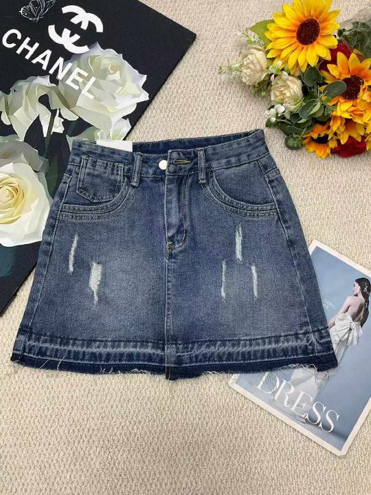 夏季新款网红复古洗水棉设计款牛仔短裙,独立包装带腰...