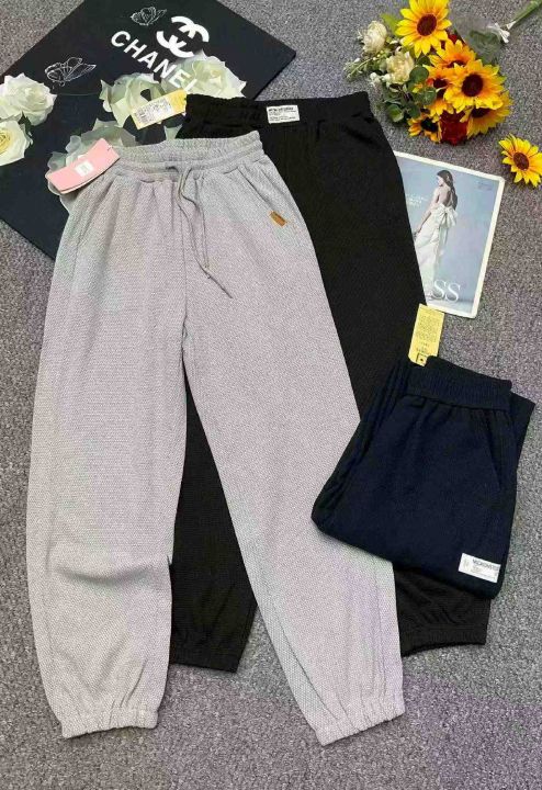 春季新款网红复古华夫格松紧腰休闲卫裤,独立包装带腰...