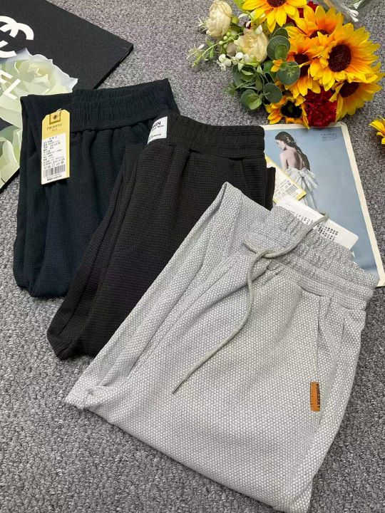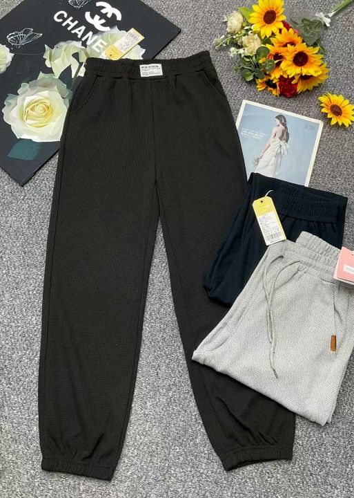 春季新款网红复古华夫格松紧腰休闲卫裤,独立包装带腰...