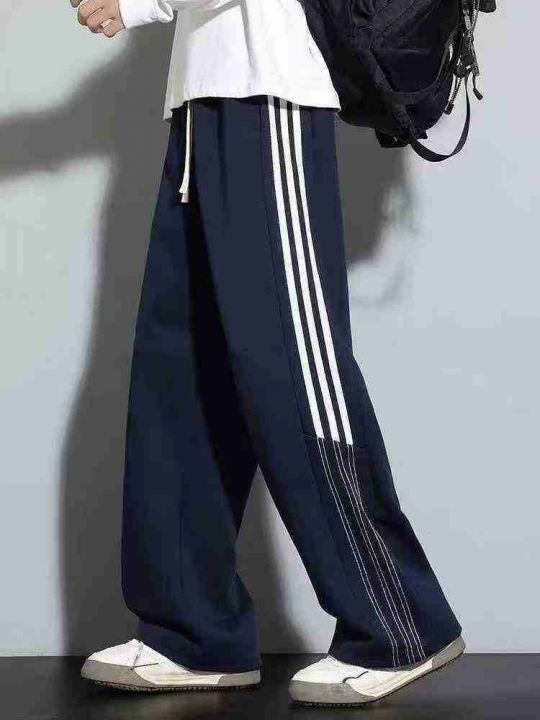 鱼鳞条纹卫裤男春秋款宽松直筒裤子大码三条杠阔腿运动裤,1到5码,独立包装,货品干净,460件左右,7.8清,分货加1