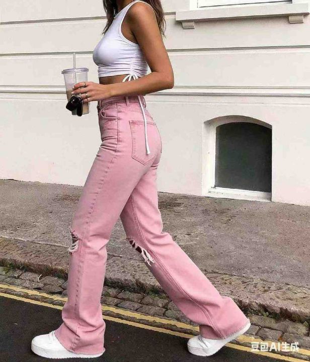 春季新款品牌外贸原单美式高弹力洗水棉破洞微喇叭牛仔...