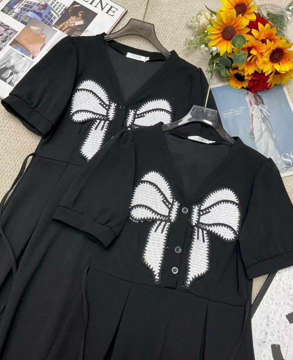 夏季新款法式赫本风黑色蝴蝶结设计感闺蜜姐妹装减龄小众气质收腰显瘦连衣裙,独立包装带吊牌,可穿100--125斤左右,148件,全清9.9元超低价秒杀!