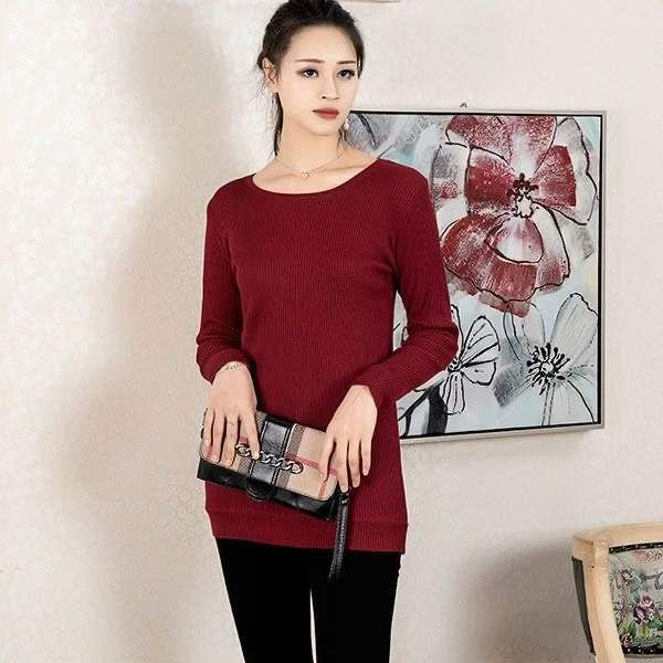 冬季净版简约宽松百搭加绒加厚中长款套头毛衣,独立包...