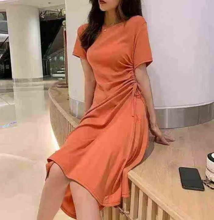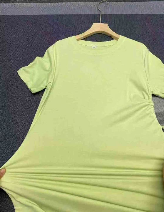 天猫在售款300件左右高品质夏季纯棉中长款靓妹抽绳收腰短袖T恤连衣裙,单款三色,有弹力,码数M-3XL,独立包装