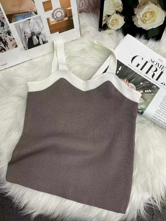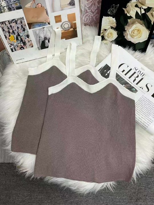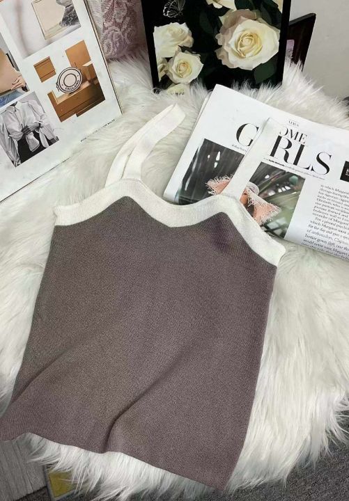 夏季新款设计感撞色弹力针织吊带,独立包装,均码面料...