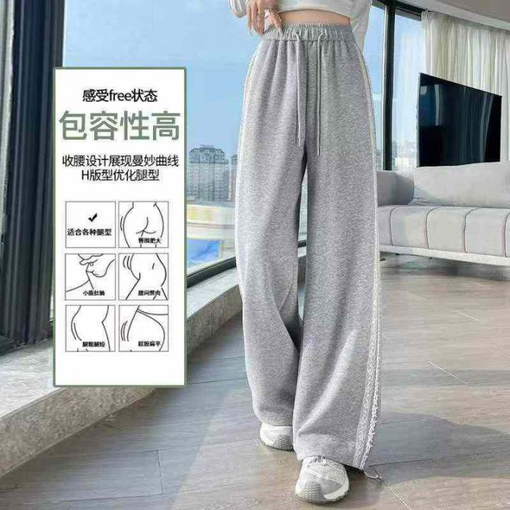 春季新款季网红复古直筒束脚2穿纯棉花边阔腿休闲卫裤...
