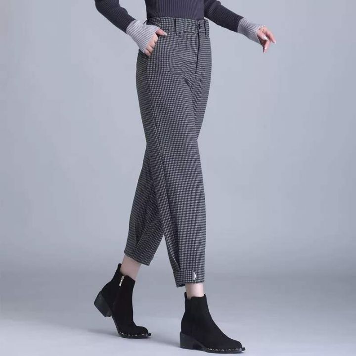 春季新款高品质品牌原单复古格子设计款毛呢休闲裤,独...