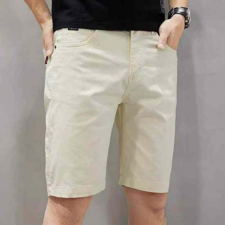 夏季新款复古洗水棉高弹力男士牛仔中裤,独立包装带吊...