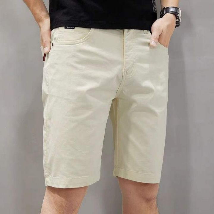 夏季新款复古洗水棉高弹力男士牛仔中裤,独立包装带吊...