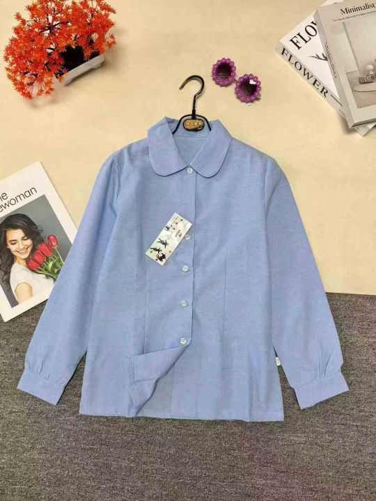 男女学院风蓝色春秋款长袖衬衣,数量 320 件,码数 110-175 码图片款,品质好,独立包装带吊牌。全清 5.8