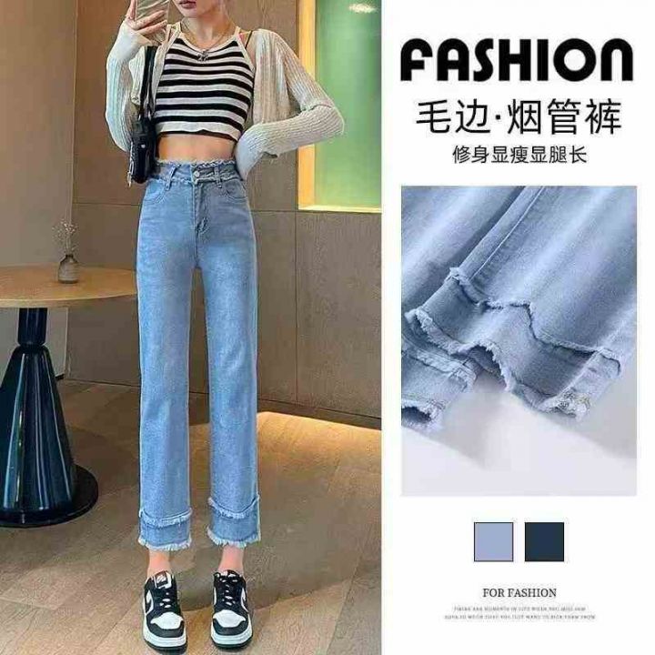 高腰显瘦弹力毛边烟管牛仔裤,单款单色,独立包装,数量200条,S-XL码,福...