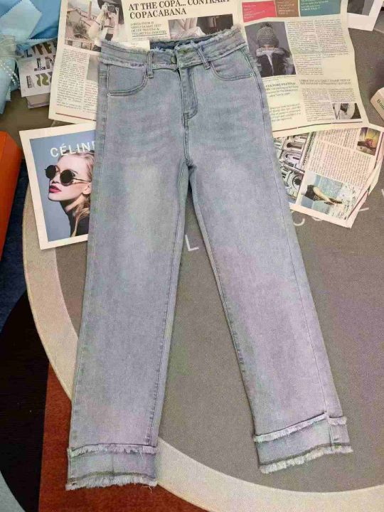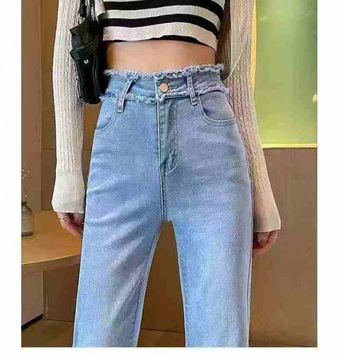 高腰显瘦弹力毛边烟管牛仔裤,单款单色,独立包装,数...