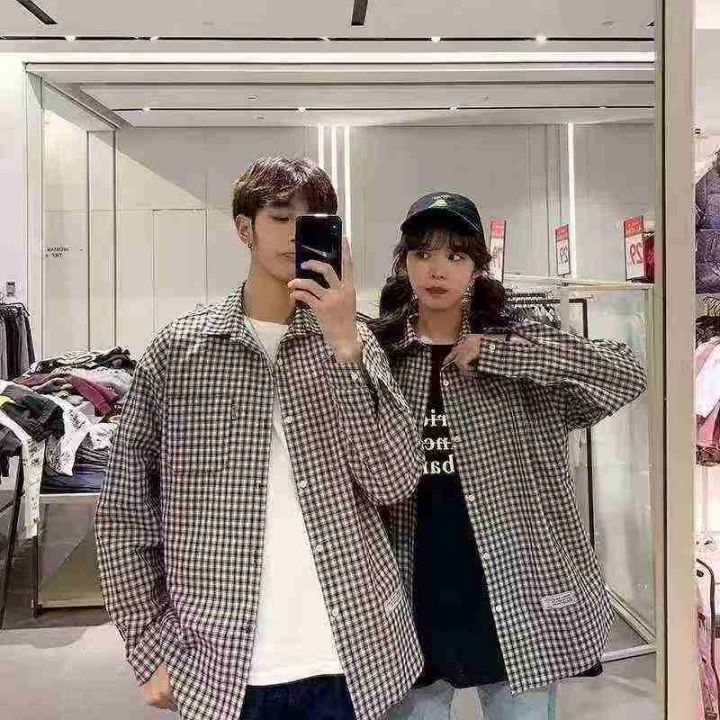 新款长袖衬衫男女时尚潮流百搭撞色格子衬衫上衣服男外套,图片2个款,M-3XL...