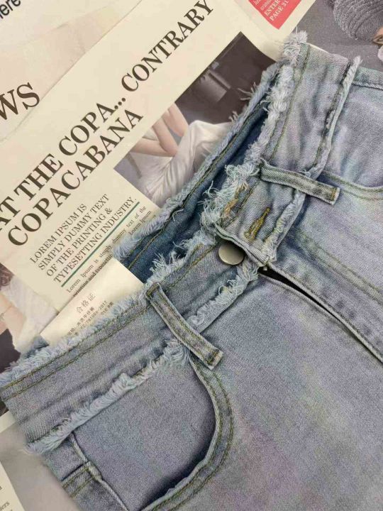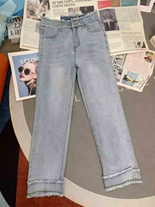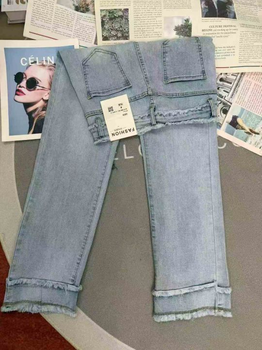 高腰显瘦弹力毛边烟管牛仔裤,单款单色,独立包装,数...