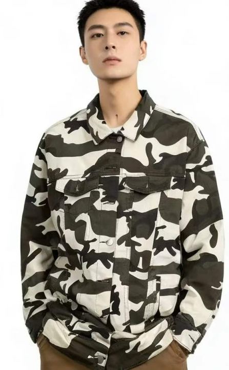 春季新款弹力迷彩洗水棉宽松耐磨牛仔外套,独立包装带腰卡,码数M、 L码, ...