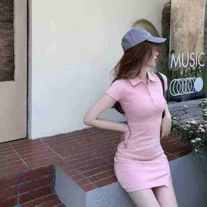 polo领连衣裙 纯欲辣妹修身显瘦性感开叉短袖包臀裙 414条 2-5码 分货➕1 独立包装 大货粉色为主, (货号322#30)