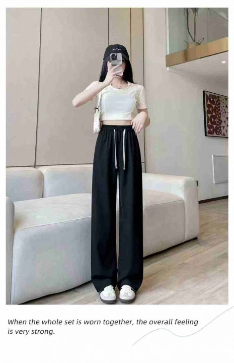 冰丝窄版西装阔腿裤女春夏季高腰垂感抽绳休闲裤直筒裤 180条 2-4码 大货黑色为主 独立包装(货号325#45)