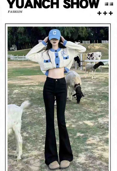 春季新款网红复古洗水棉高弹力微喇叭牛仔长裤,独立包...
