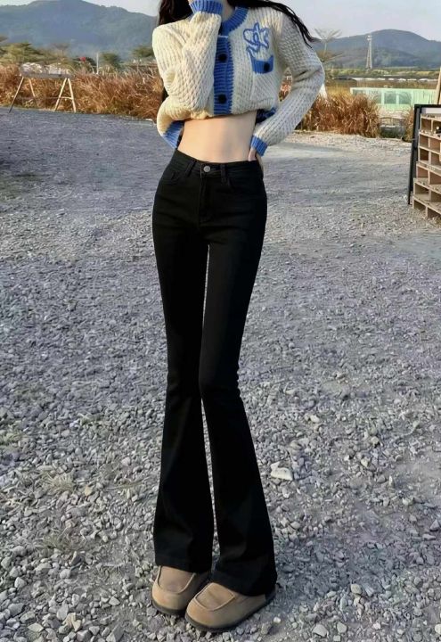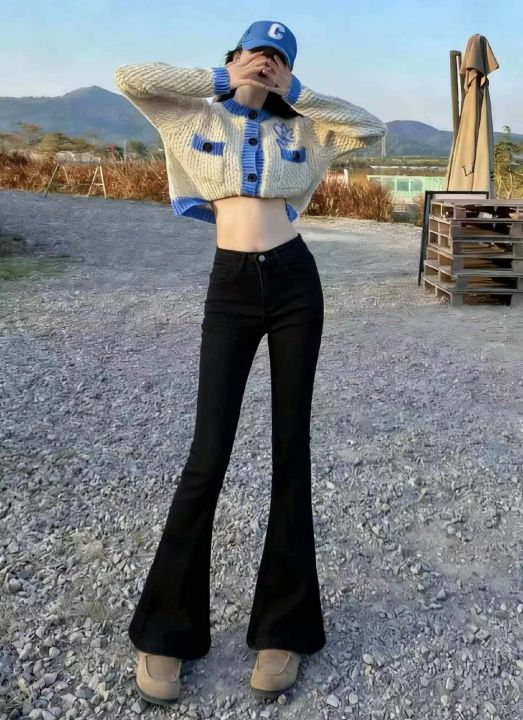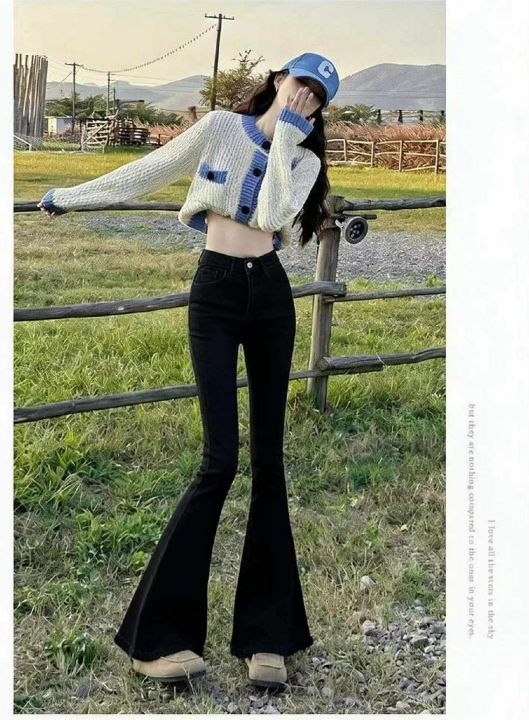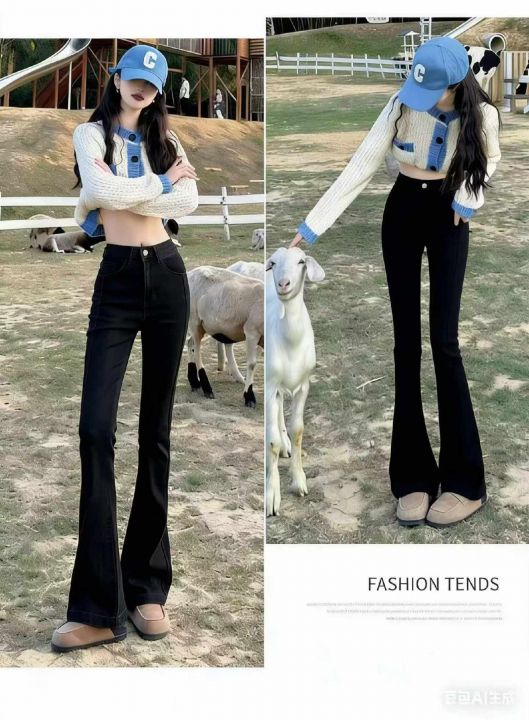 春季新款网红复古洗水棉高弹力微喇叭牛仔长裤,独立包...
