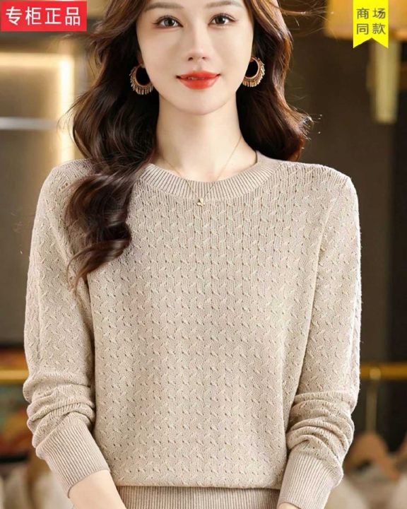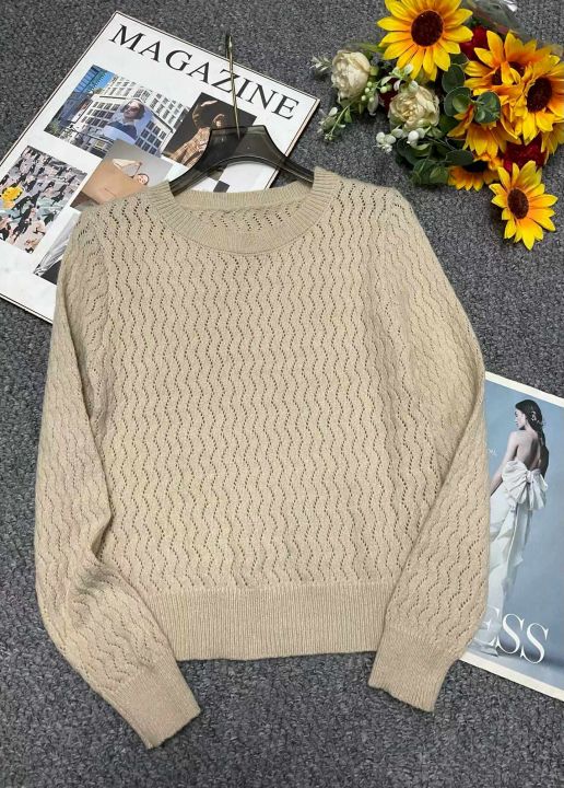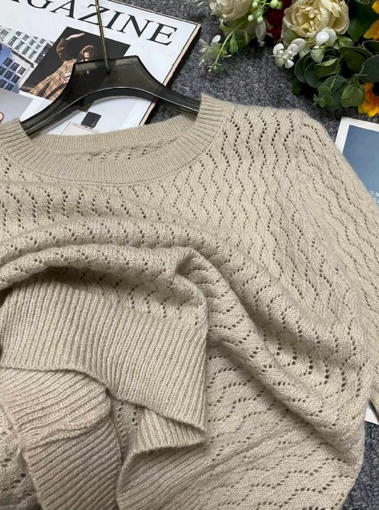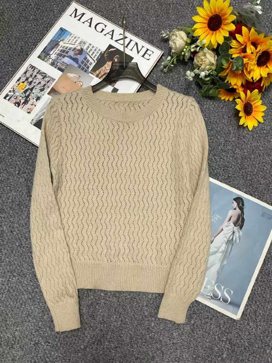 春季新款镂空扭花长袖针织衫,独立包装,均码面料软糯...