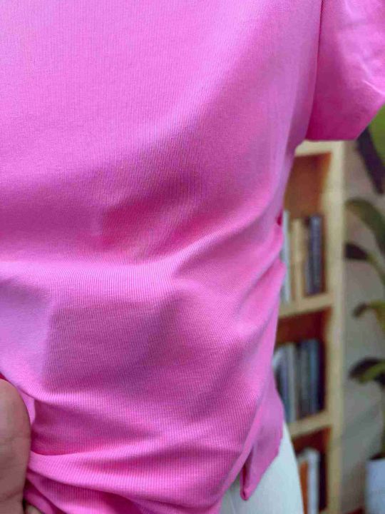 玫红色辣妹短袖t恤女夏设计感小众套头体恤纯欲紧身显瘦上衣,均码,数量1300件,独立包装,货品干净漂亮。