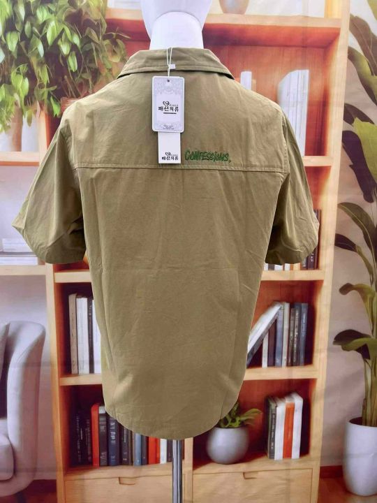 113件字母刺绣工装短袖衬衫,独立包装带吊牌,码数M-XL