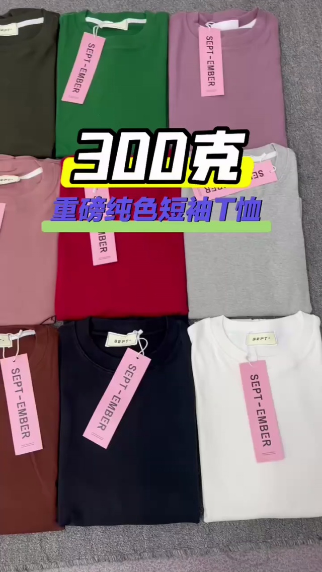 工厂直销☕️300克重磅潮牌纯色光版短袖T恤10000件全清11.8元,分货12.8元...